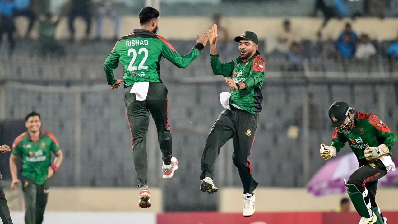 ২০৭ রানের লক্ষ্য তাড়ায় ওয়েস্ট ইন্ডিজের শুরুটা ছিল ভালোই। ওপেনিং জুটিতে ৫১ রান তুলে ভরসা জাগিয়েছিলেন ব্র্যান্ডন কিং ও অ্যালিক অ্যাথানেজ। কিন্তু এরপরই মিরপুরে শুরু রিশাদ-ঝড়। নিজের প্রথম ওভারেই ফিরিয়ে দেন অ্যাথানেজকে, তারপর একে একে তুলে নেন কিং, কার্টি, রাদারফোর্ড, চেজ ও শেষ ব্যাটার সিলসকে। ৯ ওভারে মাত্র ৩৬ রানের বিনিময়ে ৬ উইকেট—বাংলাদেশের ইতিহাসে ওয়ানডেতে কোনো লেগ স্পিনারের সেরা বোলিং ফিগার এখন তার দখলে।রিশাদের ঘূর্ণিতে ৩৯ ওভারে ১৩৩ রানে গুটিয়ে যায় ওয়েস্ট ইন্ডিজ। একপ্রান্তে কিছুটা লড়াই করলেও অন্যপ্রান্তে কেউই দাঁড়াতে পারেননি। ইনিংসের মাঝপথেই হাল ছেড়ে বসে ক্যারিবীয়রা, যারা একসময় ৫১/০ থেকে হারায় শেষ ১০ উইকেট মাত্র ৮২ রানেএর আগে বাংলাদেশের ব্যাটিংও ছিল বেশ টলমলে। ইনিংসের শুরুতেই ৮ রানে হারায় দুই ওপেনার সাইফ হাসান ও সৌম্য সরকারকে। তবে এরপর তাওহীদ হৃদয় (৫১) ও অভিষিক্ত মাহিদুল ইসলাম অঙ্কন (৪৬) এর ব্যাটে ভর করে ২০০ পেরোয় স্বাগতিকরা। শেষদিকে রিশাদের ১৩ বলে ২৬ রানের ছোট্ট ঝড়ই পার্থক্য গড়ে দেয়।