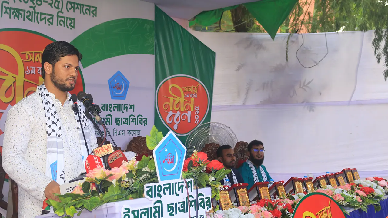 রোববার (১৯ অক্টোবর) দুপুর সাড়ে ১২টায় বরিশাল সরকারি ব্রজমোহন (বিএম) কলেজ শাখা শিবিরের উদ্যোগে কলেজ ক্যাম্পাসে আয়োজিত নবীনবরণ অনুষ্ঠানে প্রধান অতিথির বক্তব্যে তিনি এসব কথা বলেন।তিনি বলেন, আমাদের ভালো লাগলে গ্রহণ করবেন, ভালো না লাগলে গ্রহণ করবেন না। আদর্শ নিয়ে যে জোরজবরদস্তি, চেতনার চাপাচাপির যে রাজনীতি- অতীতে হয়ে ছিল, তা আর বাংলাদেশে হবে না।বিএম কলেজ শাখা ছাত্রশিবিরের সভাপতি শাহেদ খানের সভাপতিত্বে ও সেক্রেটারি নাহিদ আল হাসানের সঞ্চালনায় অনুষ্ঠানে বিশেষ অতিথি হয়ে বক্তব্য দেন বিএম কলেজ অধ্যক্ষ অধ্যাপক ড. শেখ মো. তাজুল ইসলাম ও শিবিরের কেন্দ্রীয় ক্রীড়া সম্পাদক হারুনর রশীদ রাফি।এ ছাড়া অতিথি হিসেবে আরও বক্তব্য দেন বিএম কলেজের উপাধ্যক্ষ অধ্যাপক আবু তাহের মো. রাশেদুল ইসলাম, ইসলামি ছাত্রশিবিরের সাবেক কেন্দ্রীয় দপ্তর সম্পাদক ও বরিশাল মহানগরীর সাবেক সভাপতি শেখ নিয়ামুল করিম, সাবেক কেন্দ্রীয় দাওয়া সম্পাদক মুজাহিদুল ইসলাম, কেন্দ্রীয় কার্যকরী পরিষদ সদস্য ও বরিশাল মহানগর সভাপতি হাসান নাঈম, মহানগর সেক্রেটারি আব্দুর রহমান সুজন, অফিস সম্পাদক রাশেদুল হাসান, বায়তুল মাল সম্পাদক নাজমুল হক প্রমুখ নেতারা।